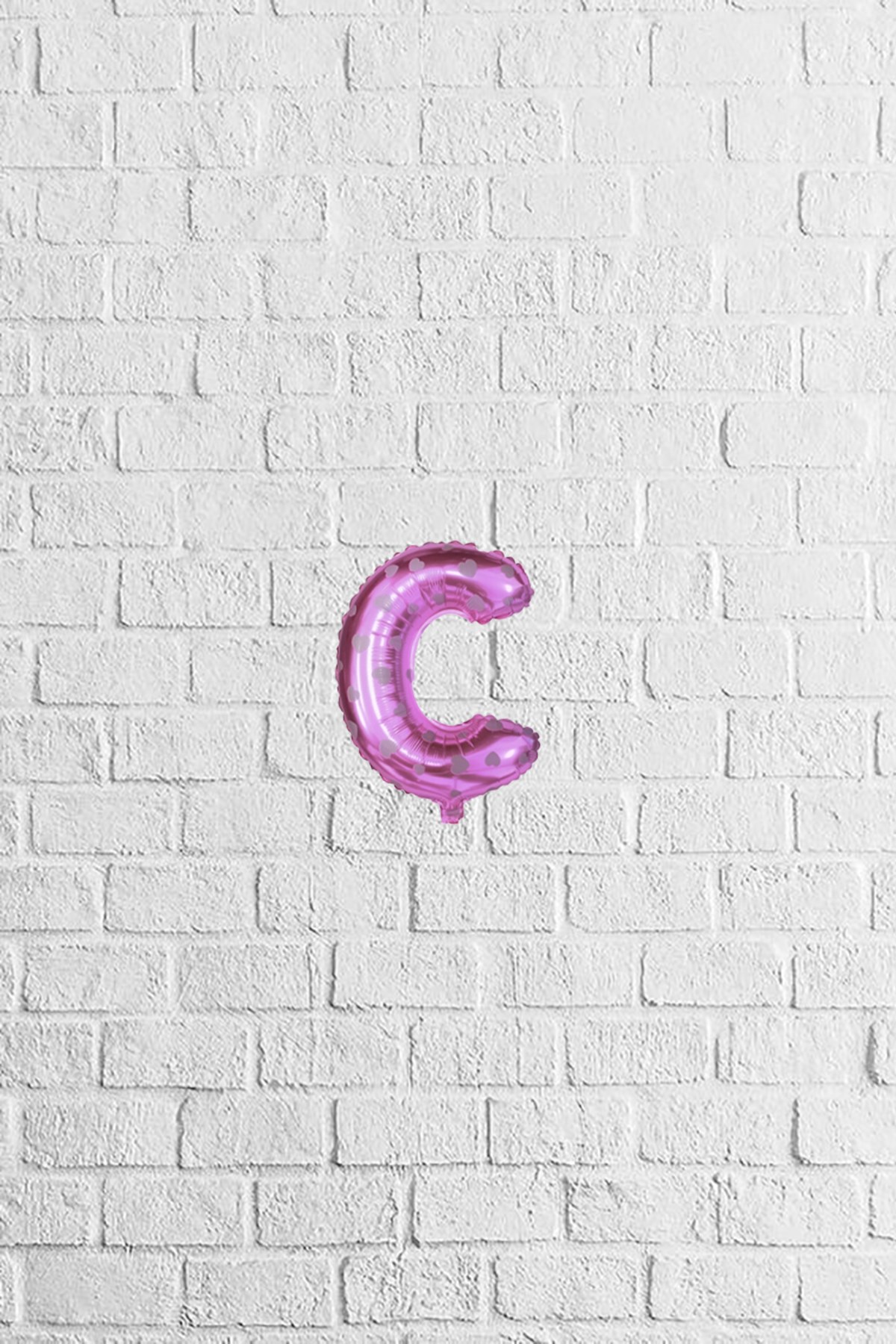 C Harf Folyo Balon Kalp Puantiyeli Pembe 16" 40cm