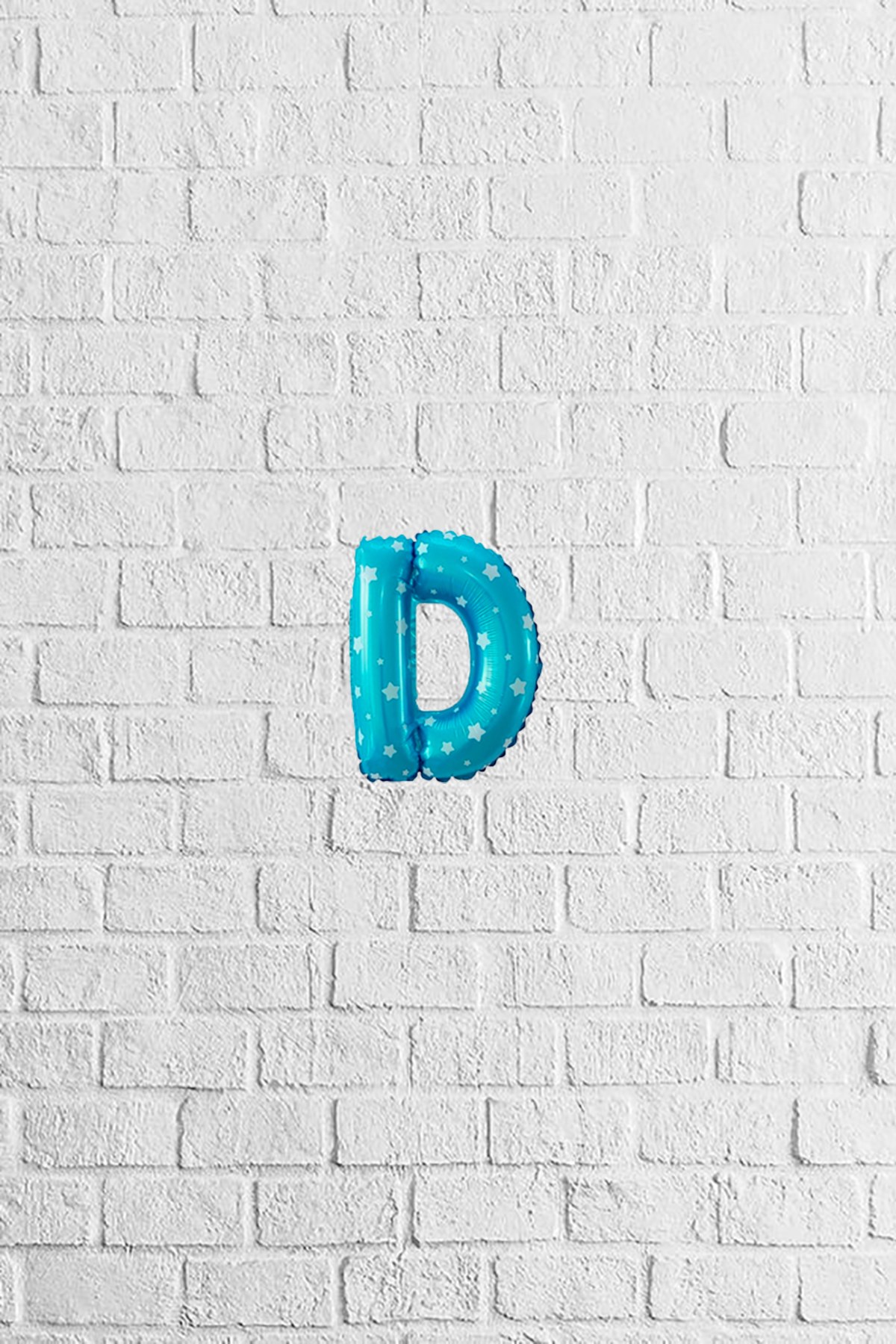 D Harf Folyo Balon Yıldız Puantiyeli Mavi 16" 40cm