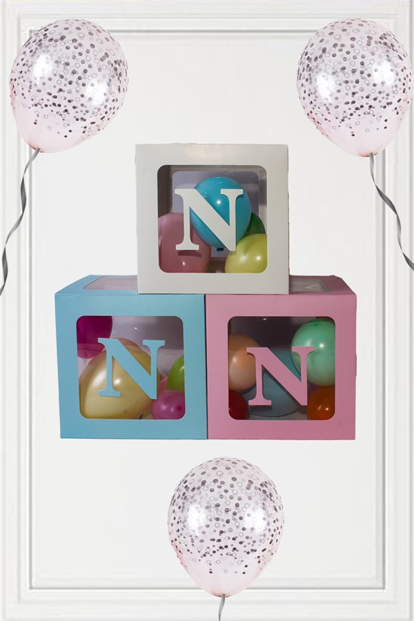Büyük Şeffaf Kutu  N Harf Beyaz 25 CmPartistST4442