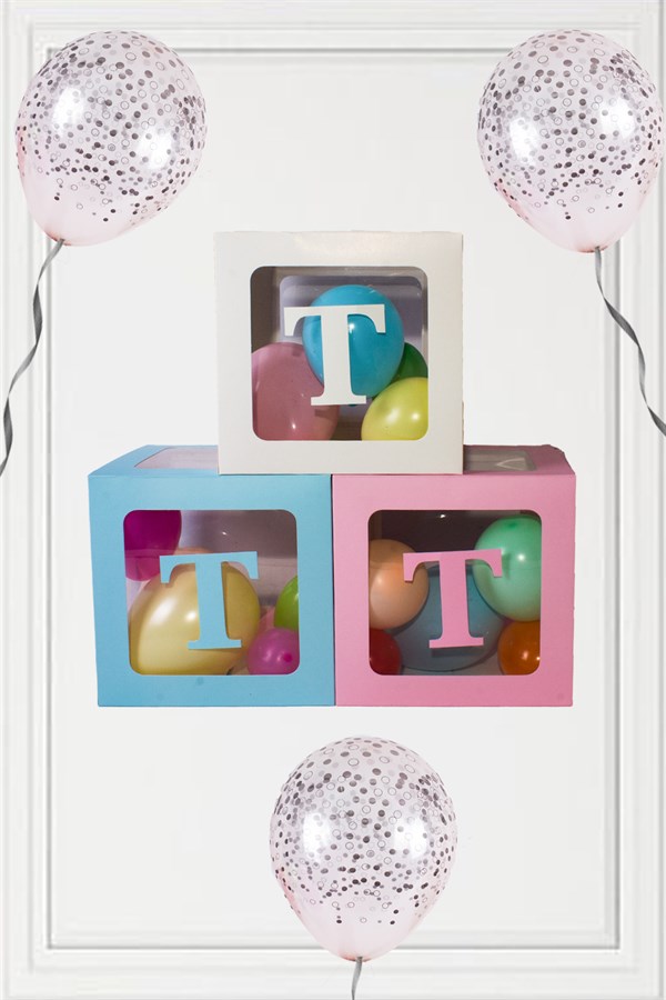 Büyük Şeffaf Kutu  T Harf Beyaz 25 CmPartistST4463