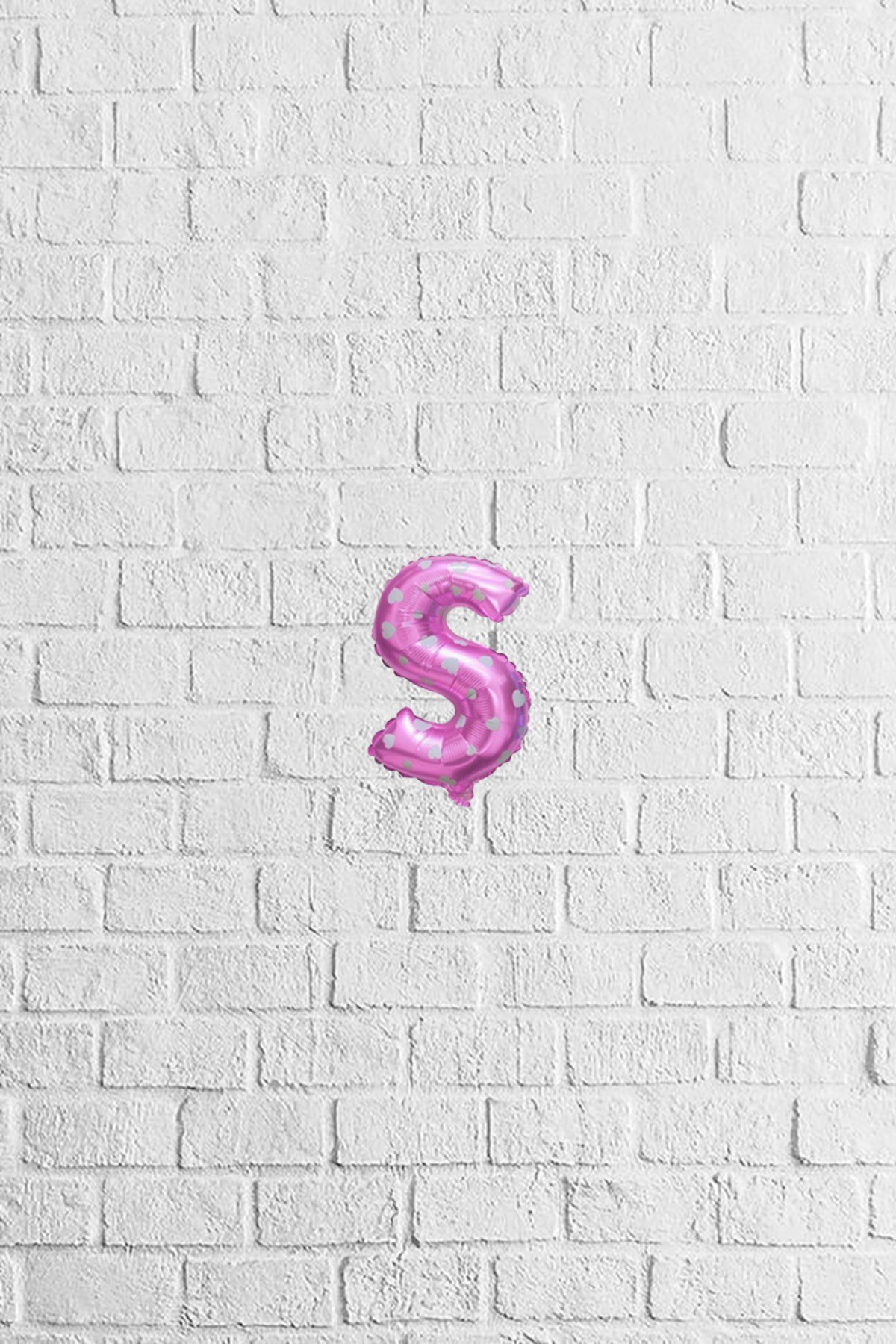 S Harf Folyo Balon Kalp Puantiyeli Pembe 16" 40cm