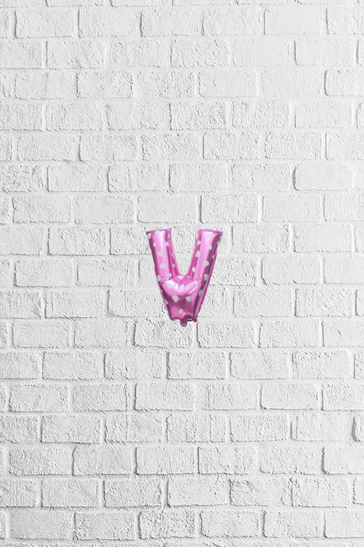 V Harf Folyo Balon Kalp Puantiyeli Pembe 16" 40cm